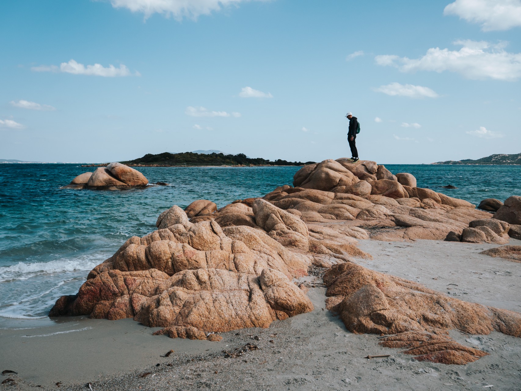 A 15 minuti da Olbia, in Gallura (Sardegna) come prima tappa appena scesi dal traghetto, andiamo nel parcheggio della spiaggia Le Saline.