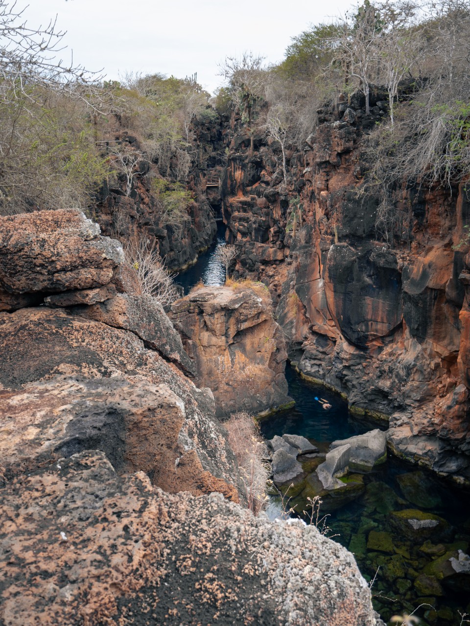 Las Grietas è una spettacolare formazione naturale situata vicino a Puerto Ayora, famosa per le sue acque cristalline incastonate tra alte pareti di roccia lavica. Questo luogo è uno dei migliori spot di snorkeling alle Galapagos.