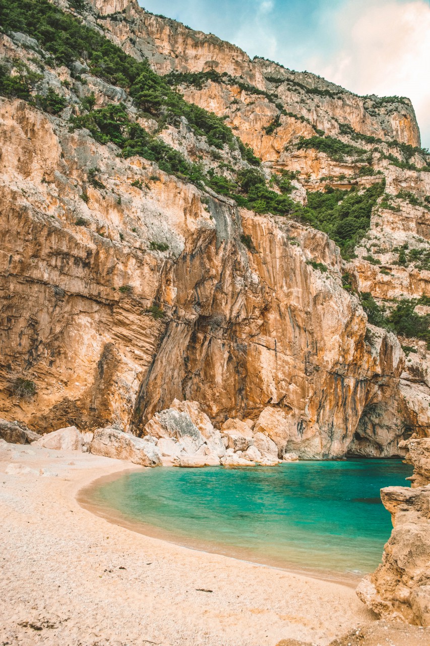 Una perla del golfo di Orosei: è una caletta intima caratterizzata da sassolini bianchi e rosa e acqua limpidissima.