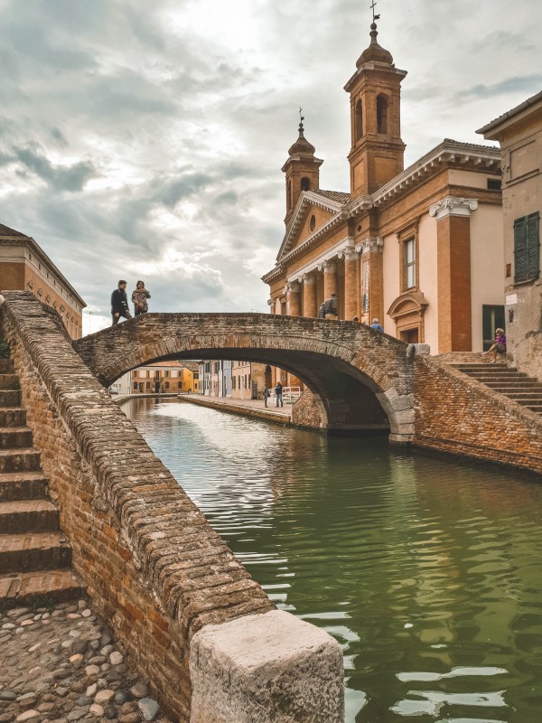 Comacchio, però, è una cittadina più modesta e tranquilla, nonostante la costante affluenza di turisti durante tutto l'anno. Il ponte più famoso è il Ponte degli Sbirri, una grande ponte con ampie scalinate su entrambi i lati; da qui si può ammirare da una parte l’Antico Ospedale degli Infermi e dall’altra l’ottocentesco Palazzo Bellini e il celebre Trepponti, simbolo di Comacchio.
